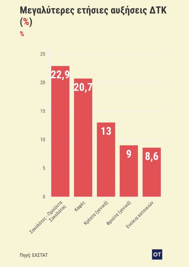 Πληθωρισμός Ελλάδα: 2,4% τον Νοέμβριο – Σοκολάτα +22,9%, Καφές +20,7%, Ενοίκια +8,6%
